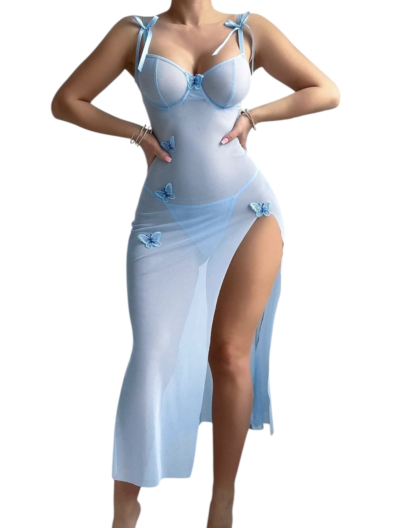 Number of Pieces: Dress Thong 2 Piece Fabric: Slight Stretch Sheer: Yes Chest pad: No Wires: Underwire 95% Polyester, 5% Elastane Machine wash